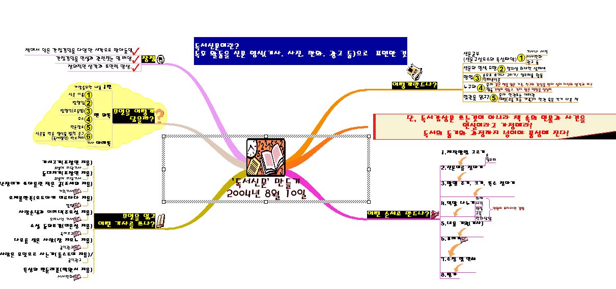 8월 10일자 기사에 독서신문 만들기 라는 기사가 있어서 마인드매핑을 해보았는데