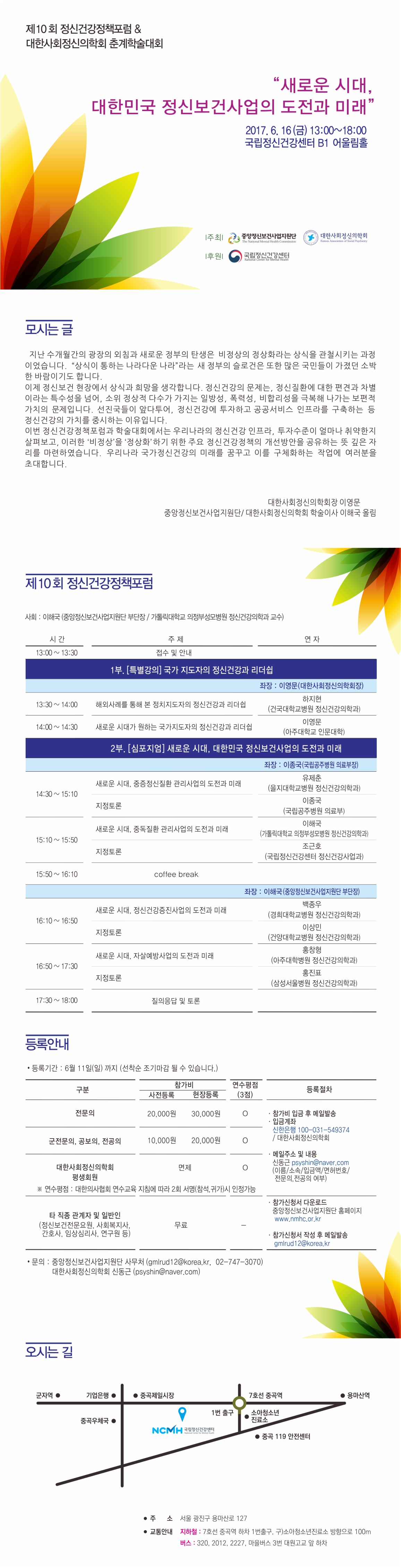 * 행사명: 10회 정신건강정책포럼 &대한사회정신의학회 춘계학술대회