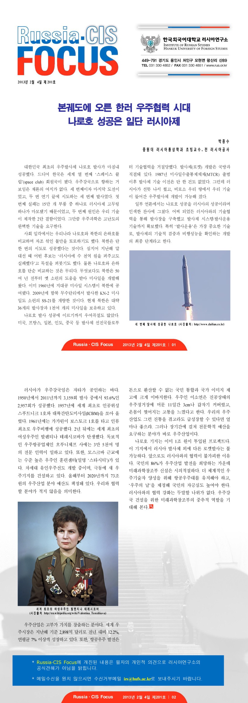 제201호 본궤도에 오른 한러 우주협력 시대
