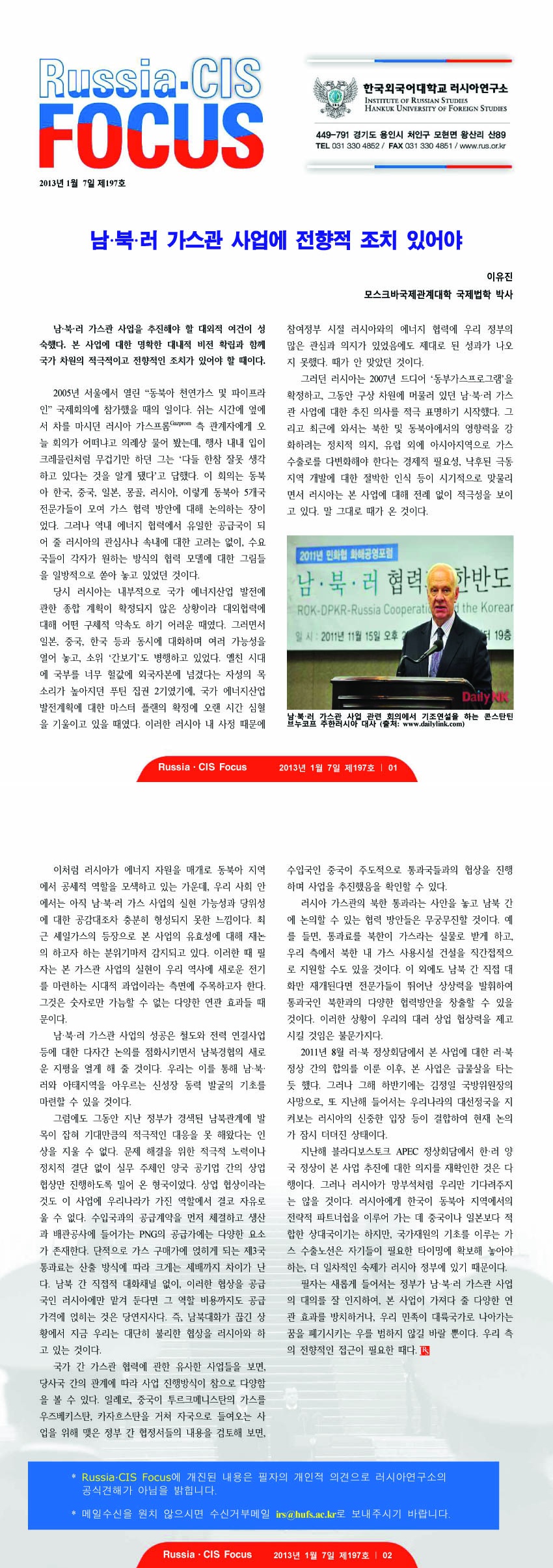제197호 남·북·러 가스관 사업에 전향적 조치 있어야