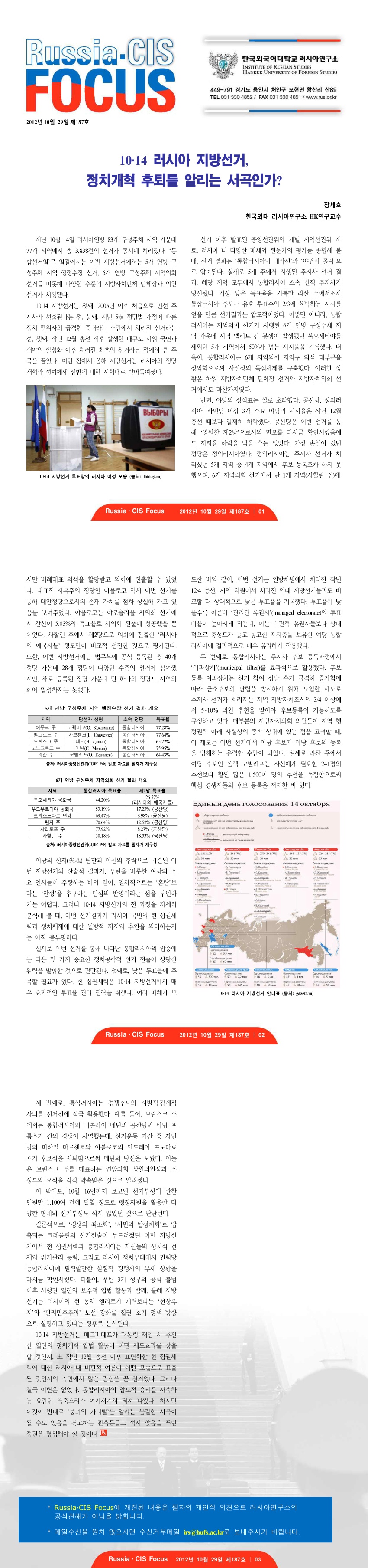 제187호 10·14 러시아 지방선거, 정치개혁 후퇴를 알리는 서곡인가?