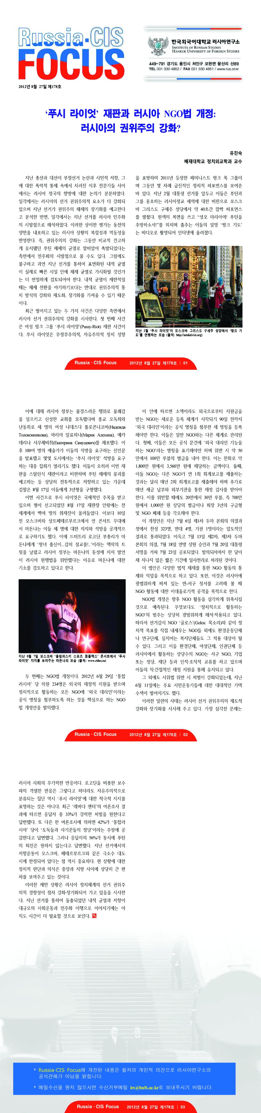 제178호 ‘푸시 라이엇’ 재판과 러시아 NGO법 개정: 러시아의 권위주의 강화?