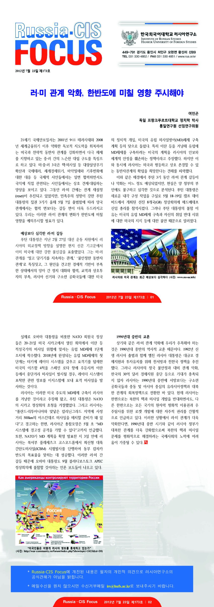 제173호 러·미 관계 악화, 한반도에 미칠 영향 주시해야