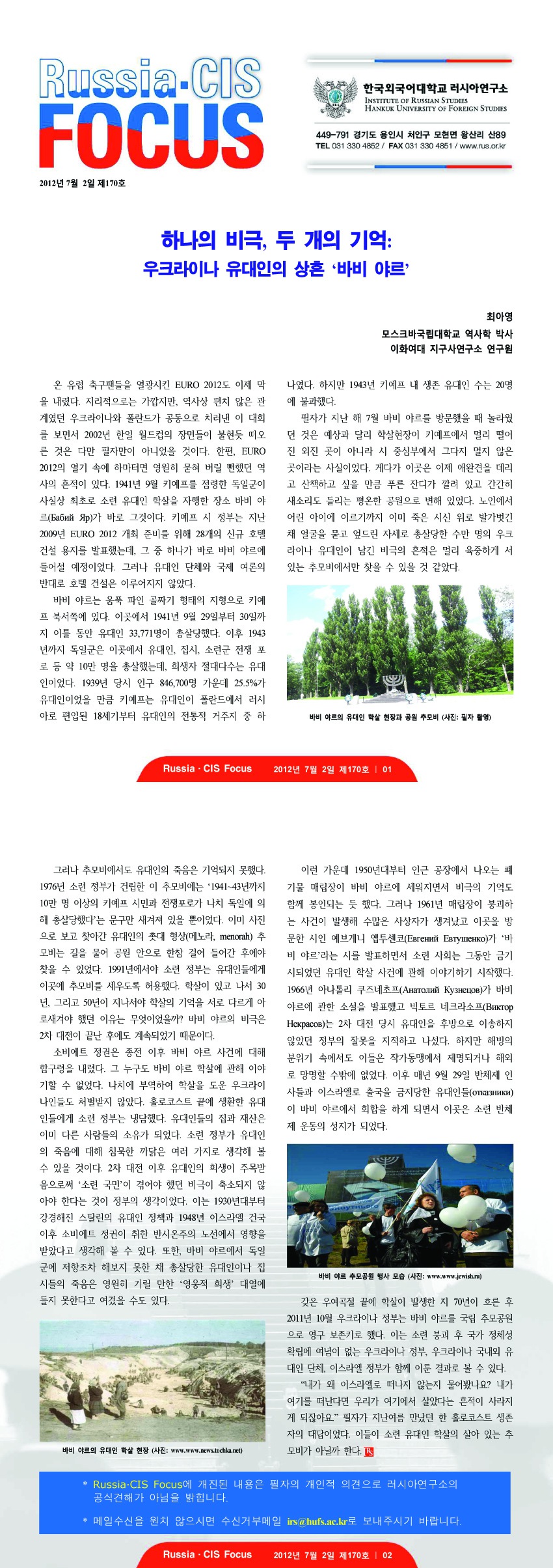 제170호 하나의 비극, 두개의 기억 : 우크라이나 유대인의 상흔 '바비 야르'
