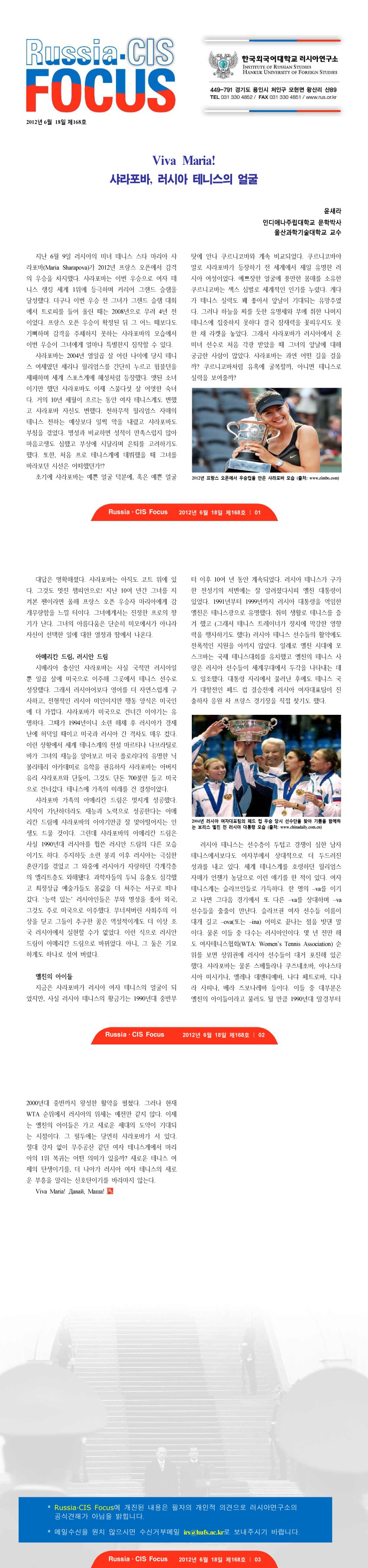 제168호 Viva Maria! 샤라포바, 러시아 테니스의 얼굴