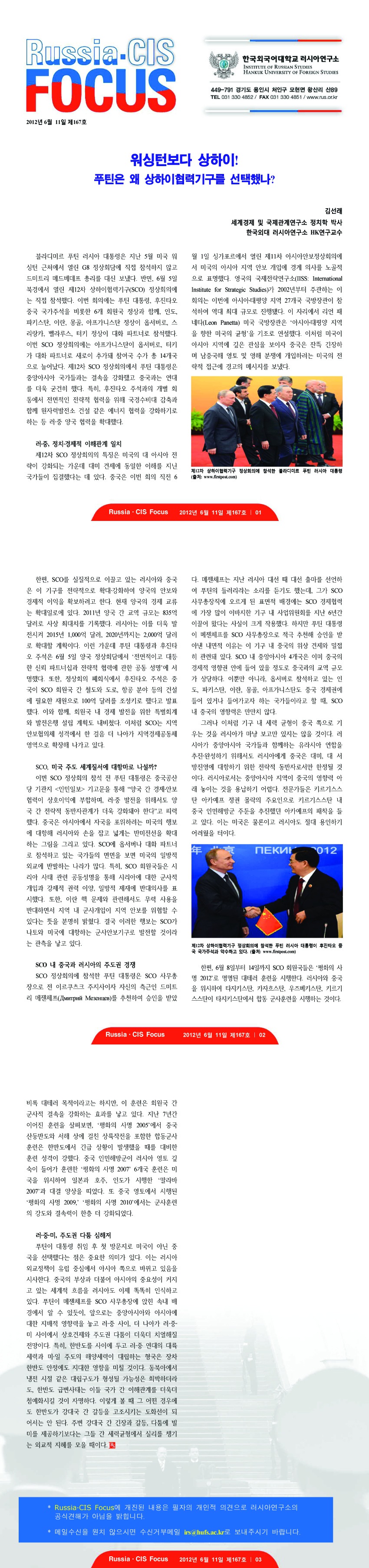 제167호 워싱턴보다 상하이! 푸틴은 왜 상하이협력기구를 선택했나?