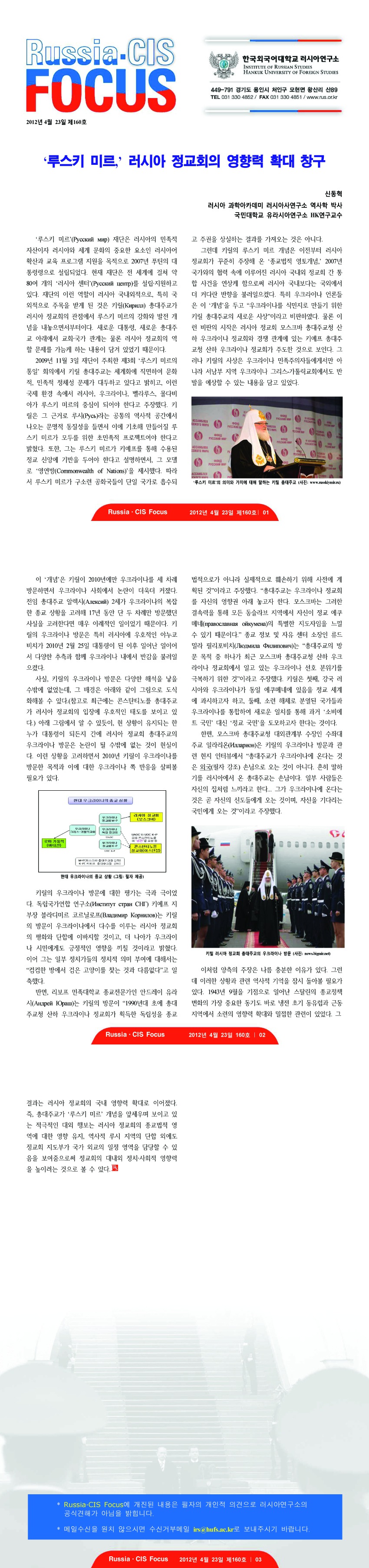 제160호 ‘루스키 미르’, 러시아 정교회의 영향력 확대 창구