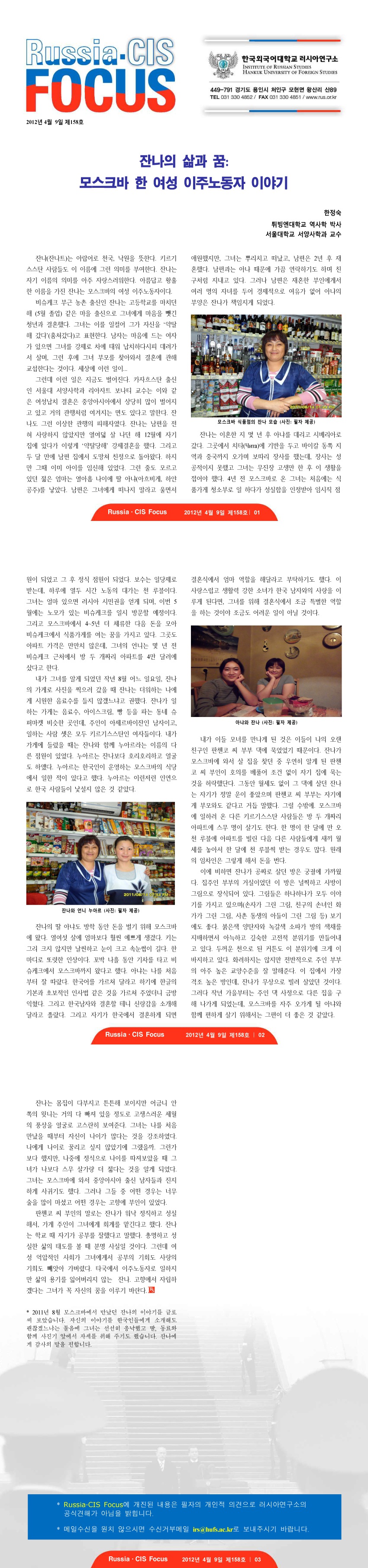 제158호 잔나의 삶과 꿈: 모스크바 한 여성 이주노동자 이야기