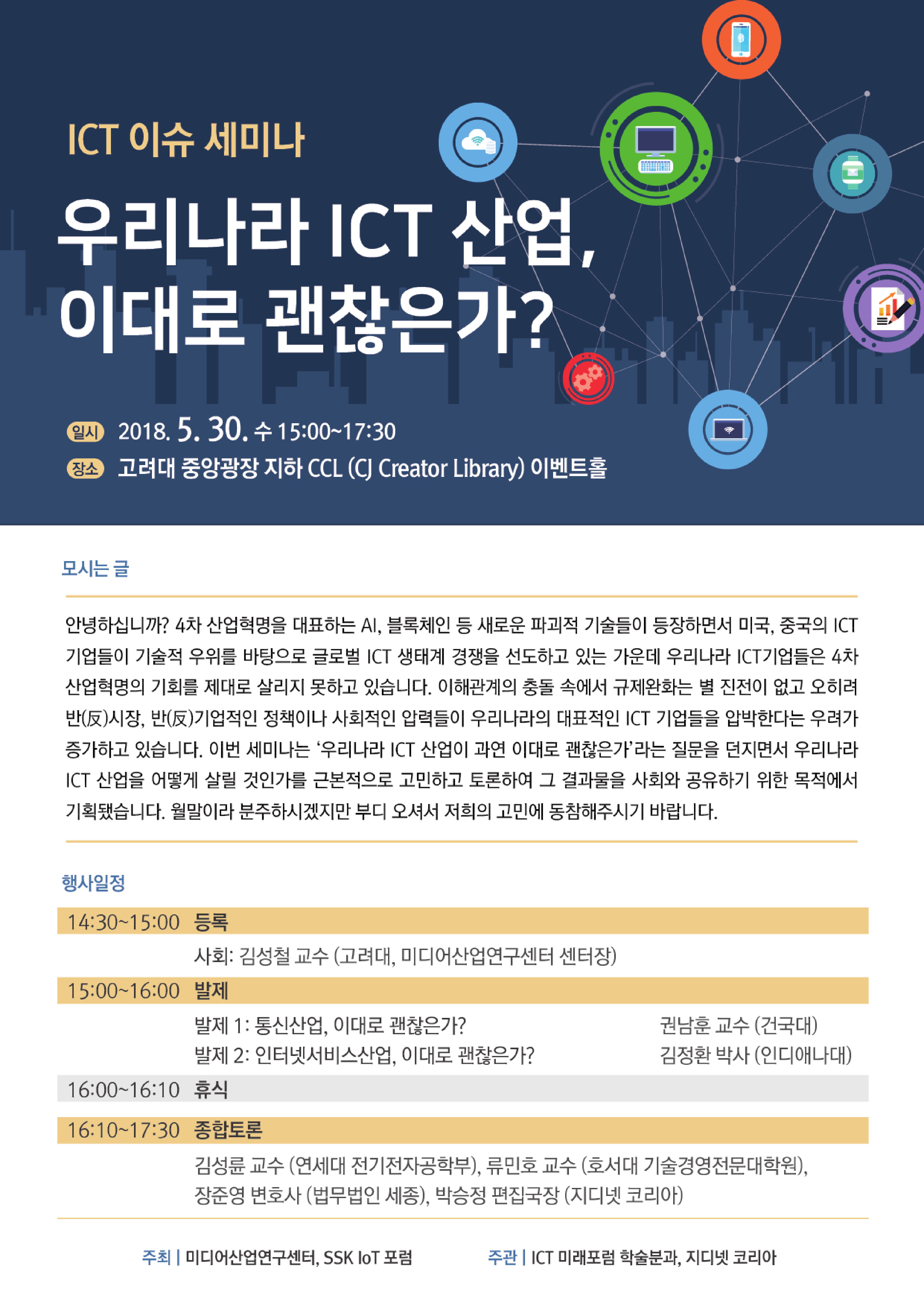 오는 5월 30일에 개최되는 ICT 이슈 세미나에 여러분을 초대합니다.