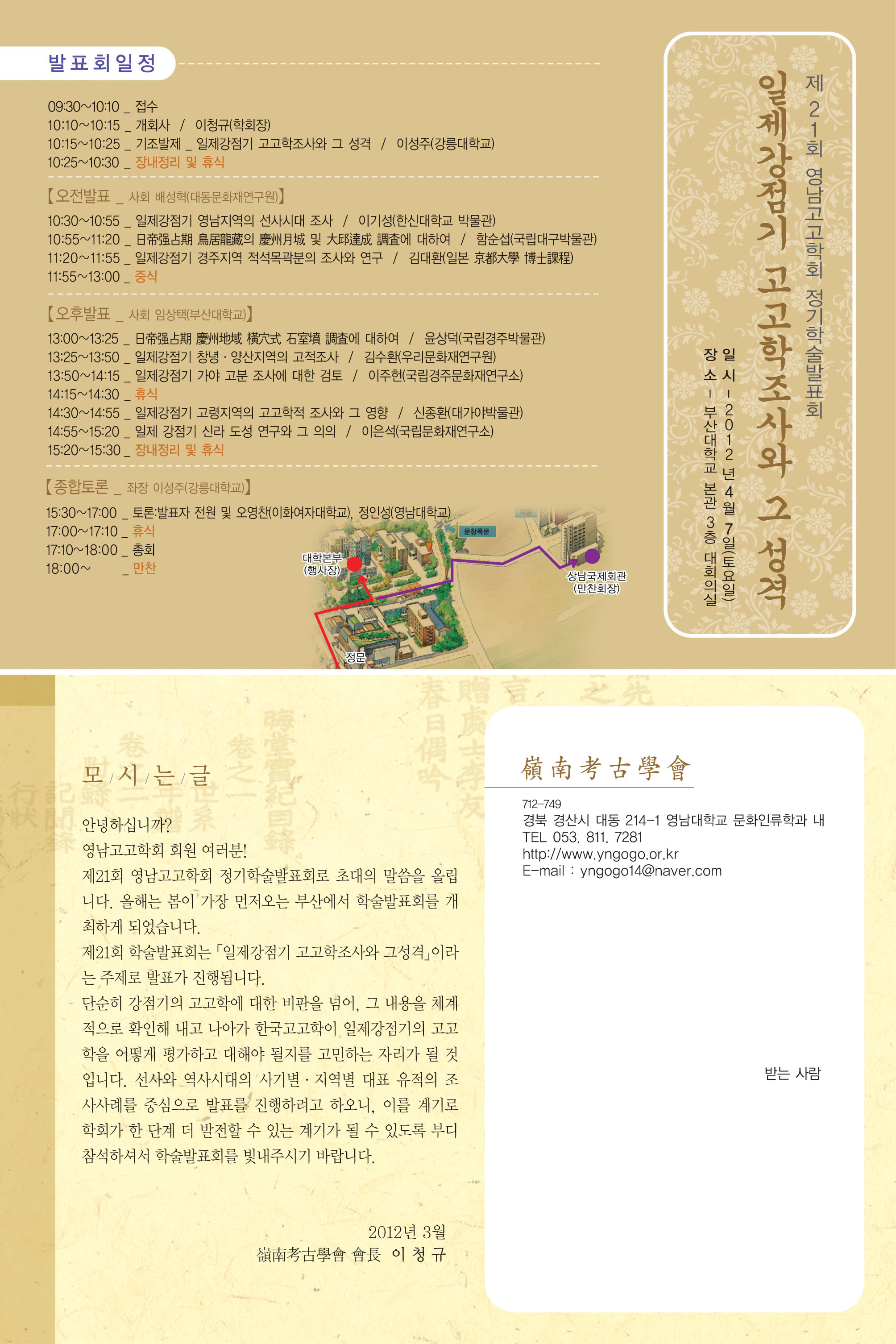 영남고고학회 제 21회 정기학술발표대회 개최 알림