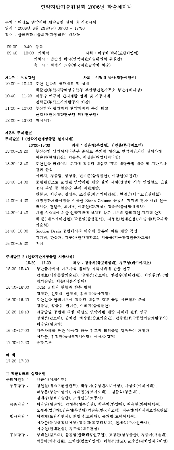 연약지반기술위원회 2006년 학술세미나 개최