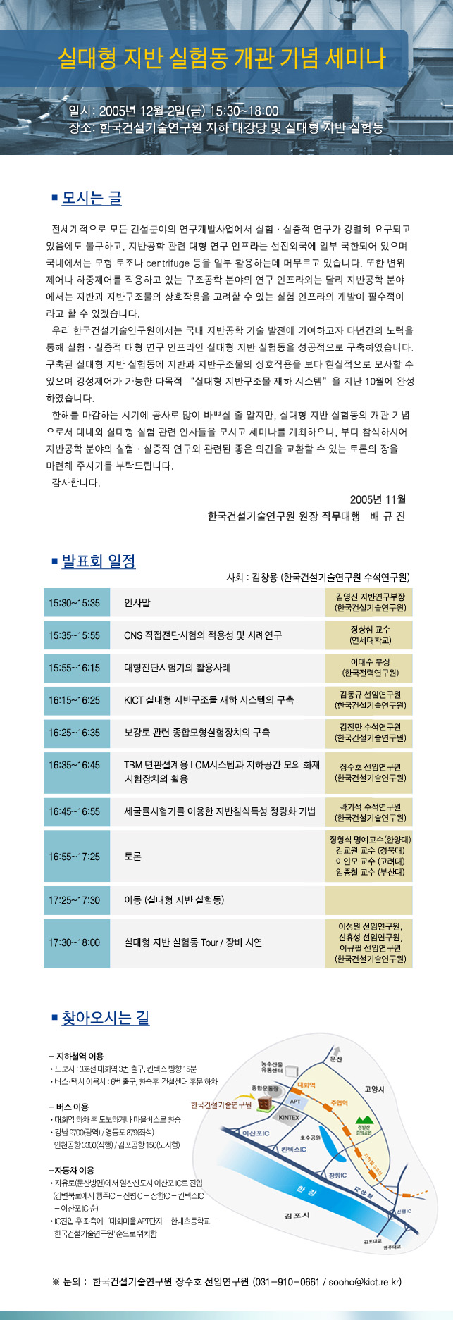 한국건설기술연구원 지반연구부 실대형 지반실험동 개관세미나