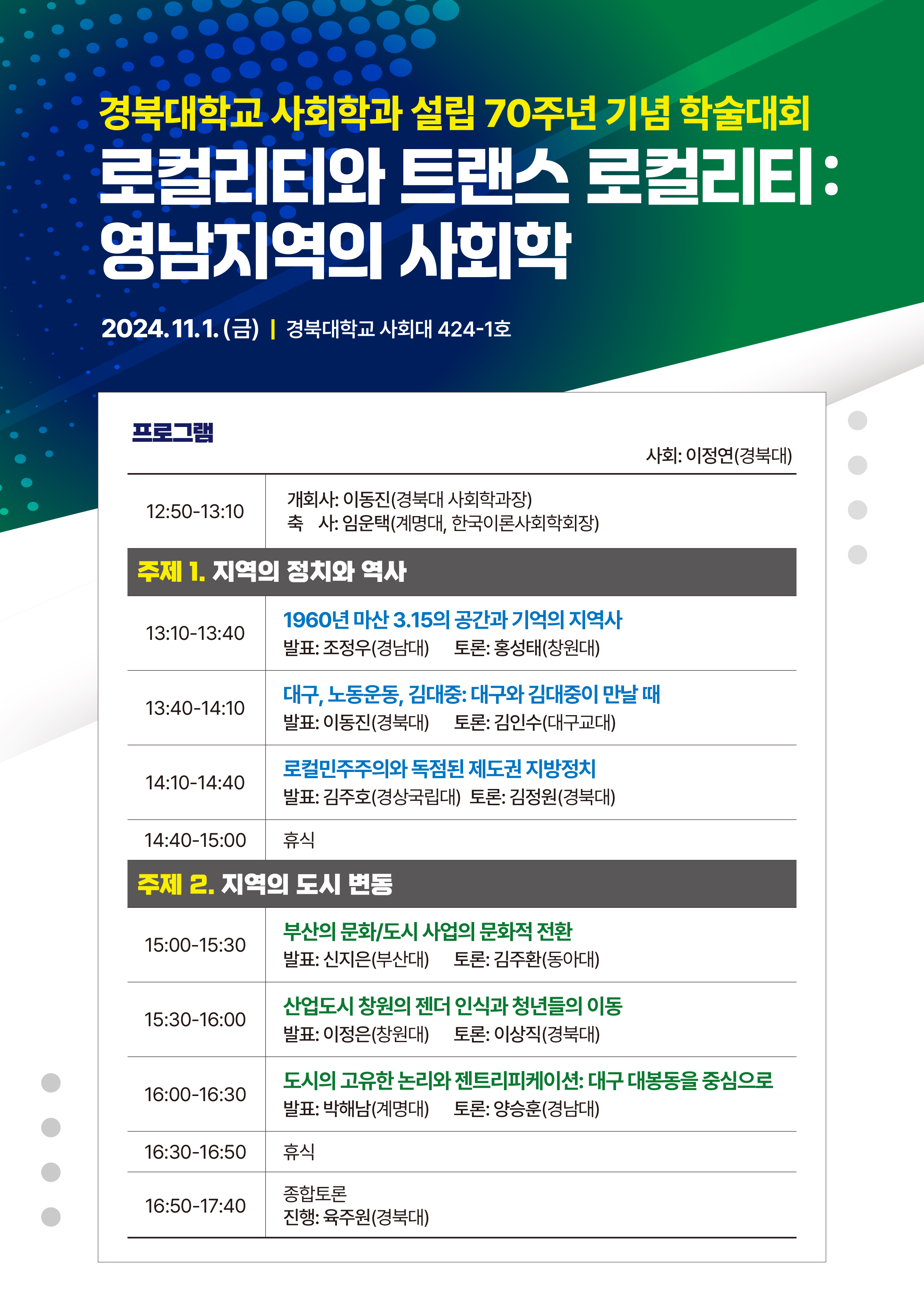 외부행사 안내: 경북대 사회학과 70주년 기념 학술대회