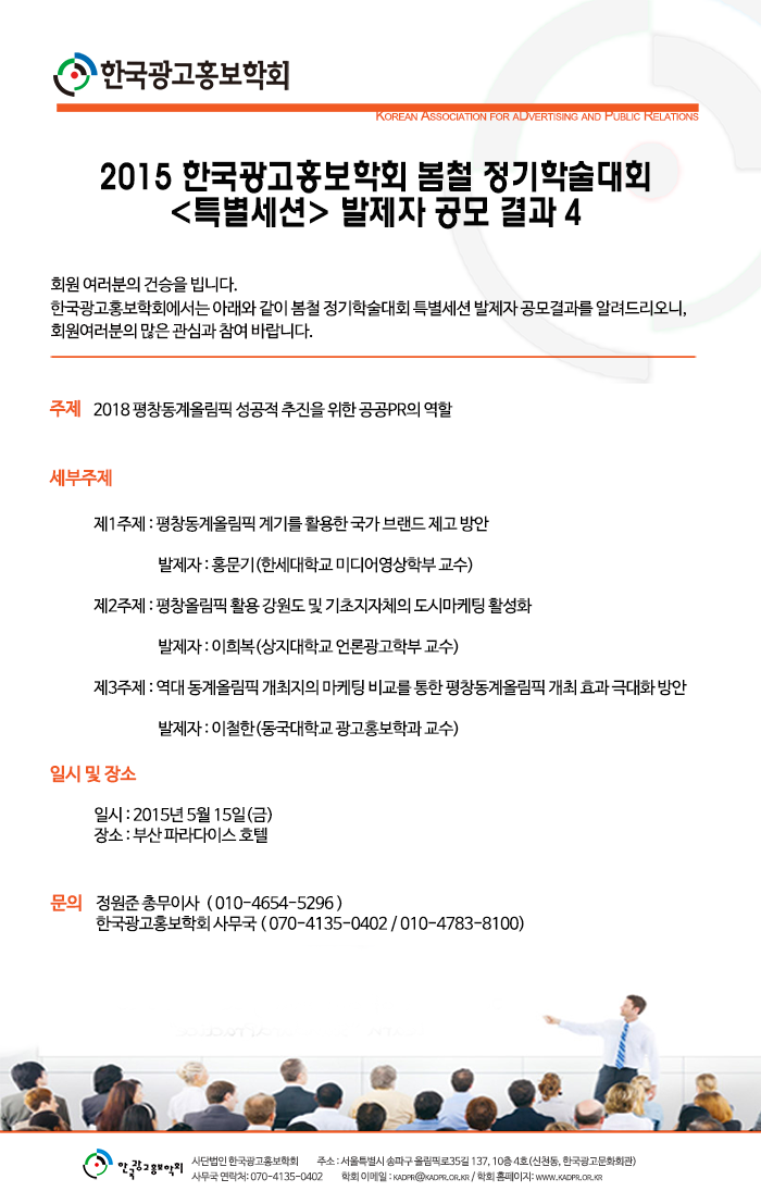 [공모결과] <2018 평창동계올림픽 성공적 추진을 위한 공공PR의 역할> 봄철 정기학술대회(특별세션) 발제자 공모결과