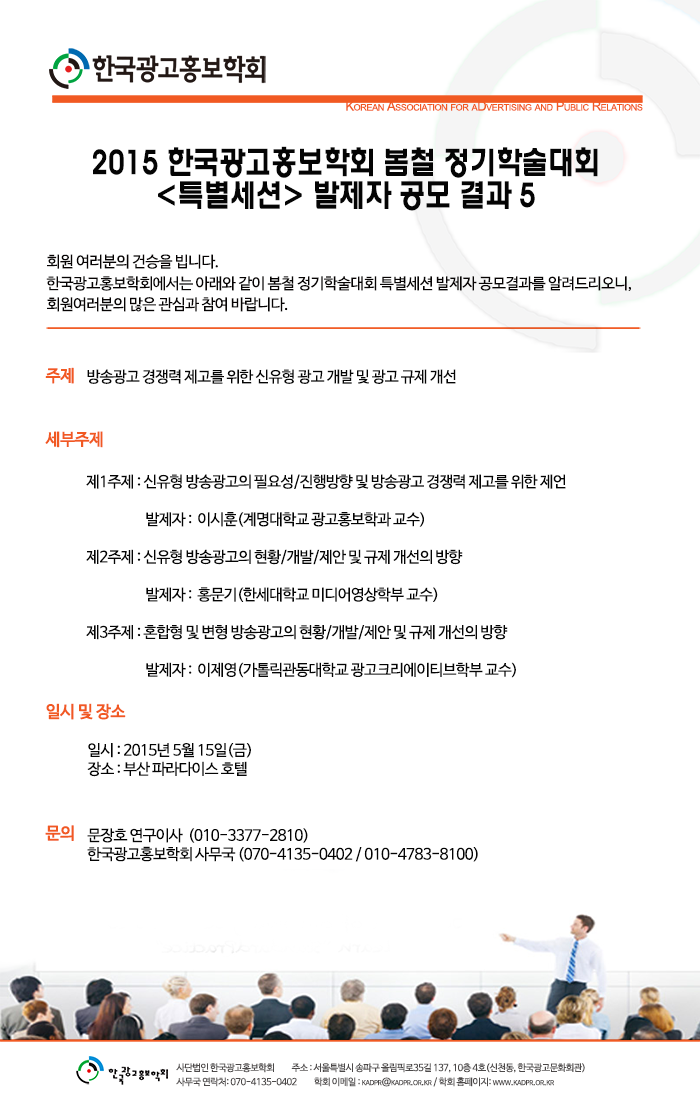 [공모결과] <방송광고 경쟁력 제고를 위한 신유형 광고 개발 및 광고 규제 개선> 봄철 정기학술대회(특별세션) 발제자 공모결과