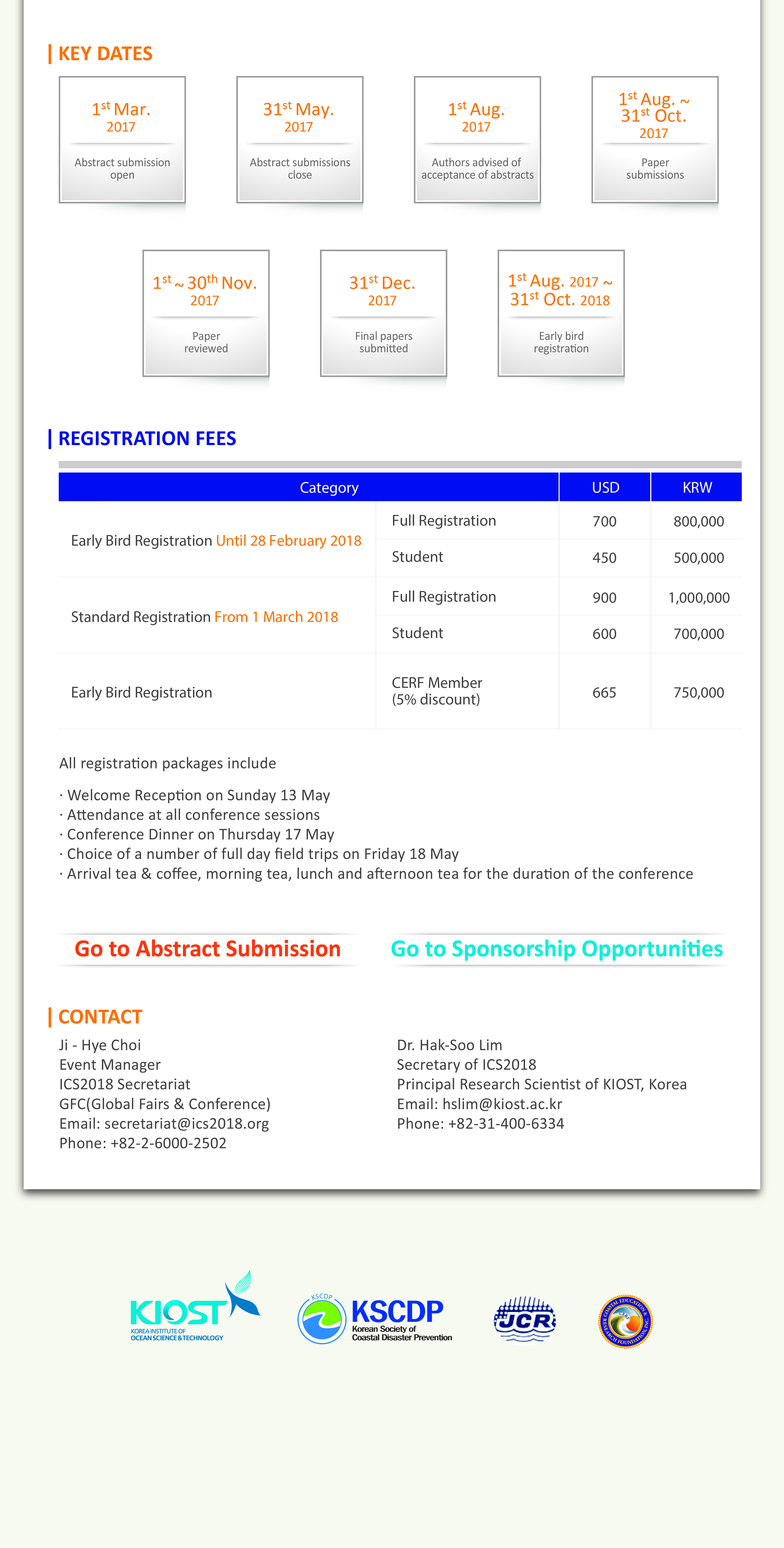 ICS2018 (www.ics2018.org)은 한국해양과학기술원(KIOST)과 (사)한국연안방재학회(KSCDP)가