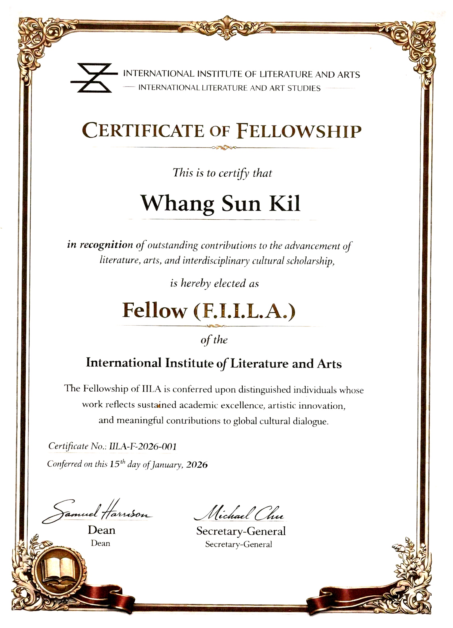 황선길 한국애니메이션학회 명예회장이 국제 문화예술 분야에서 학문적·예술적 공헌을 인정받아 국제문학예술연구소(IILA)의 한국인 첫 펠로우로 선정됐다. 황선길 명예회장은 3월 4일 국제문학예술연구소(IILA·International Institute of Literature and Arts)로부터 펠로우(F.I.I.L.A.) 선정 증서를 받았다고 밝혔다. IILA 펠로우십은 문학과 예술, 학제 간 문화 연구 발전에 탁월한 공헌을 한 인물에게 수여되는 국제적 명예 자격이다. IILA는 세계 문학과 예술의 발전을 목적으로 작품 전시, 학술 토론, 강연회, 출판 활동 등을 지원하고 공동 주최하는 국제 문화예술 연구기관이다. 연구소 구성원은 일반 회원(Member)과 펠로우(Fellow)로 구분되며, 펠로우는 연구 프로젝트 자문위원으로 활동하고 전시 작품 심사, 세미나 및 강연 등 다양한 국제 행사에 공식 초청을 받게 된다. 특히 IILA가 주최하거나 후원하는 전시회와 문화행사는 세계 각국을 순회하며 개최돼 국제 문화예술 교류 확대에 중요한 역할을 하고 있다. 이번 선정으로 황선길 명예회장은 한국인 최초로 IILA 펠로우에 이름을 올리게 됐으며, 향후 국제 문화예술 프로젝트 자문과 작품 심사, 강연 및 세미나 참여 등을 통해 세계 문화예술 교류 활동을 펼칠 예정이다. 황 명예회장은 “이번 펠로우 선정은 개인의 영예를 넘어 한국 문화예술이 세계와 더욱 활발히 교류할 수 있는 계기가 될 것으로 기대한다”며 “앞으로도 한국에서 세계로 활동 영역을 넓혀 문화예술 발전에 기여하겠다”고 말했다. 한편 IILA 펠로우십은 지속적인 학문적 성과와 예술적 혁신, 세계 문화 대화에 대한 의미 있는 기여를 보인 저명 인사에게 수여되는 국제적 명예 자격으로 평가받고 있다.