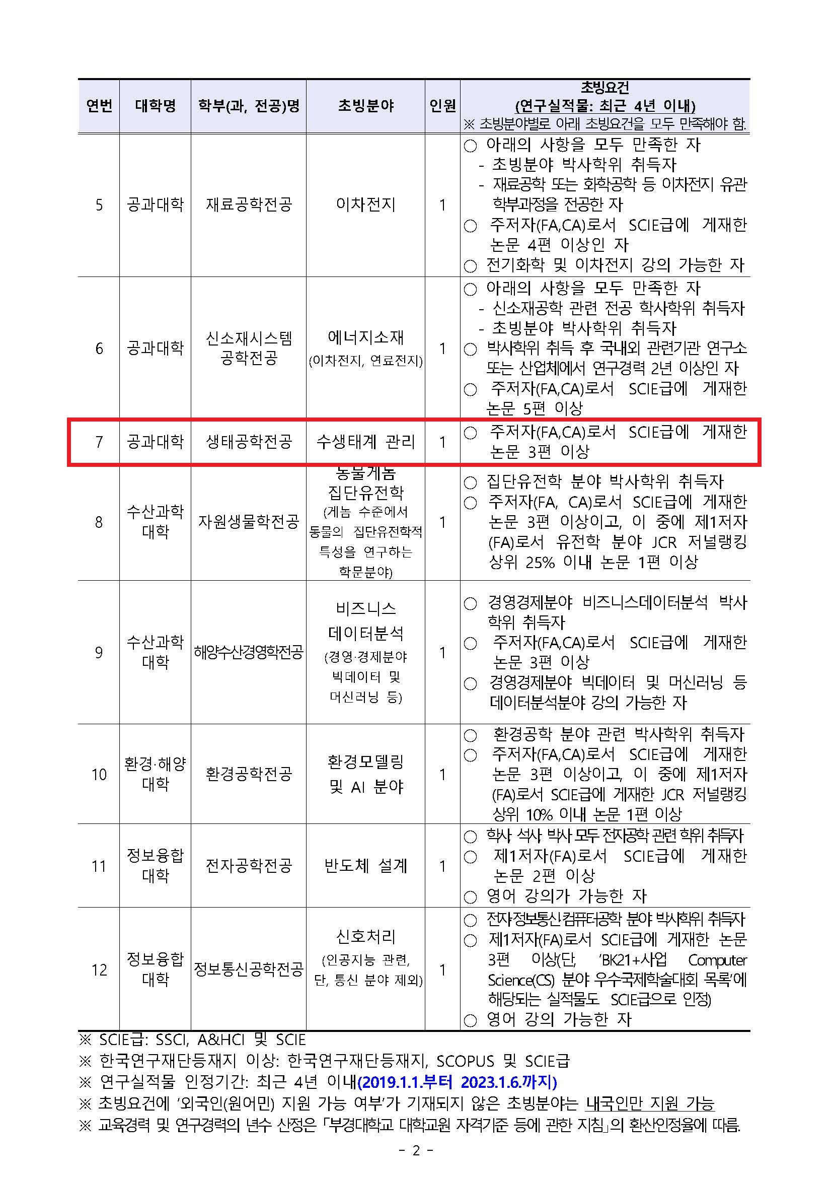[부경대학교 생태공학전공] 2023학년도 전기2차 전임교원 신규채용 공고