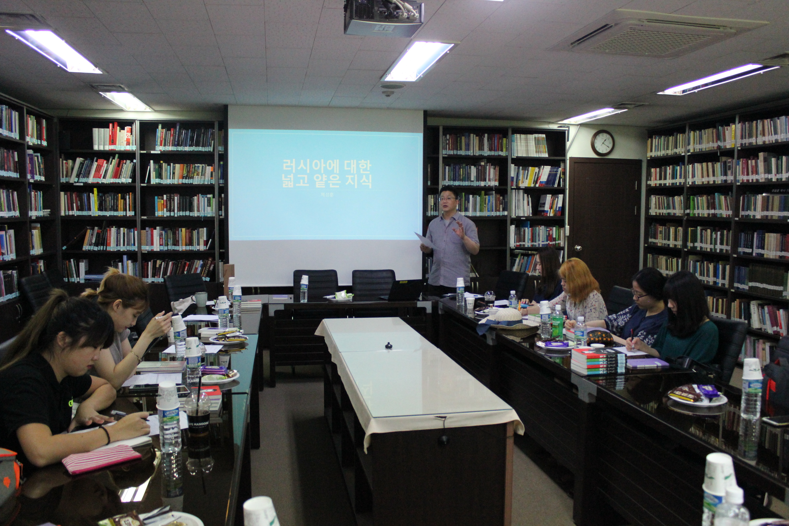 워크숍에는  3 기  JSC  멤버  10 명을 비롯해 제성훈 교수 ( 노어과 ),  라승도  HK 연구교수 ( 러시아연구소 ),  김준석  HK 연구교수 ( 러시아연구소 ) 와 양성민 멘토 ( 국제지역대학원 러시아 , CIS 학과 등이 참여해 여름방학을 맞은 학생들과 뜻 깊은 시간을 가졌다 .