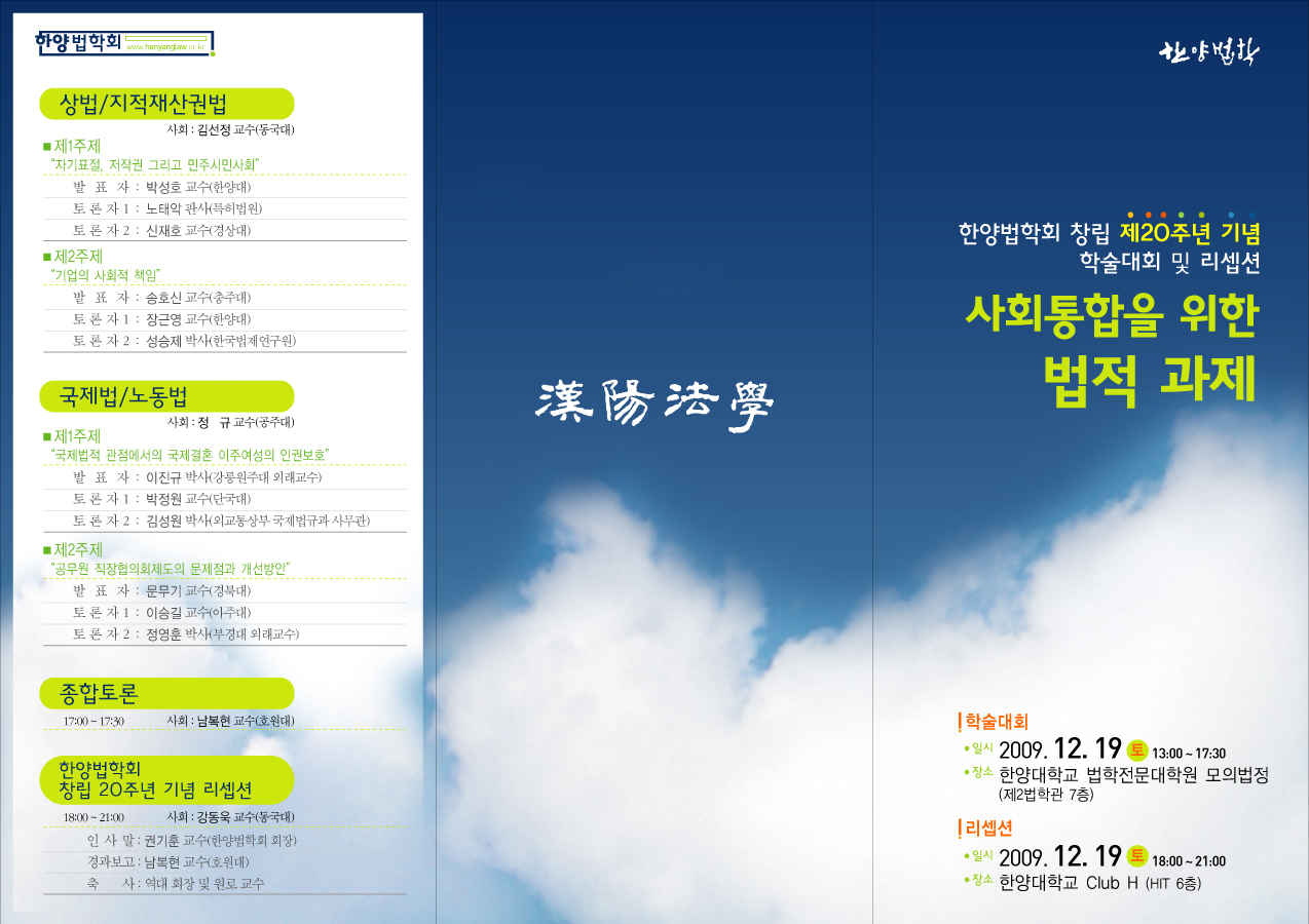 한양법학회 창립 제20주년 기념 동계학술대회 및 리셉션