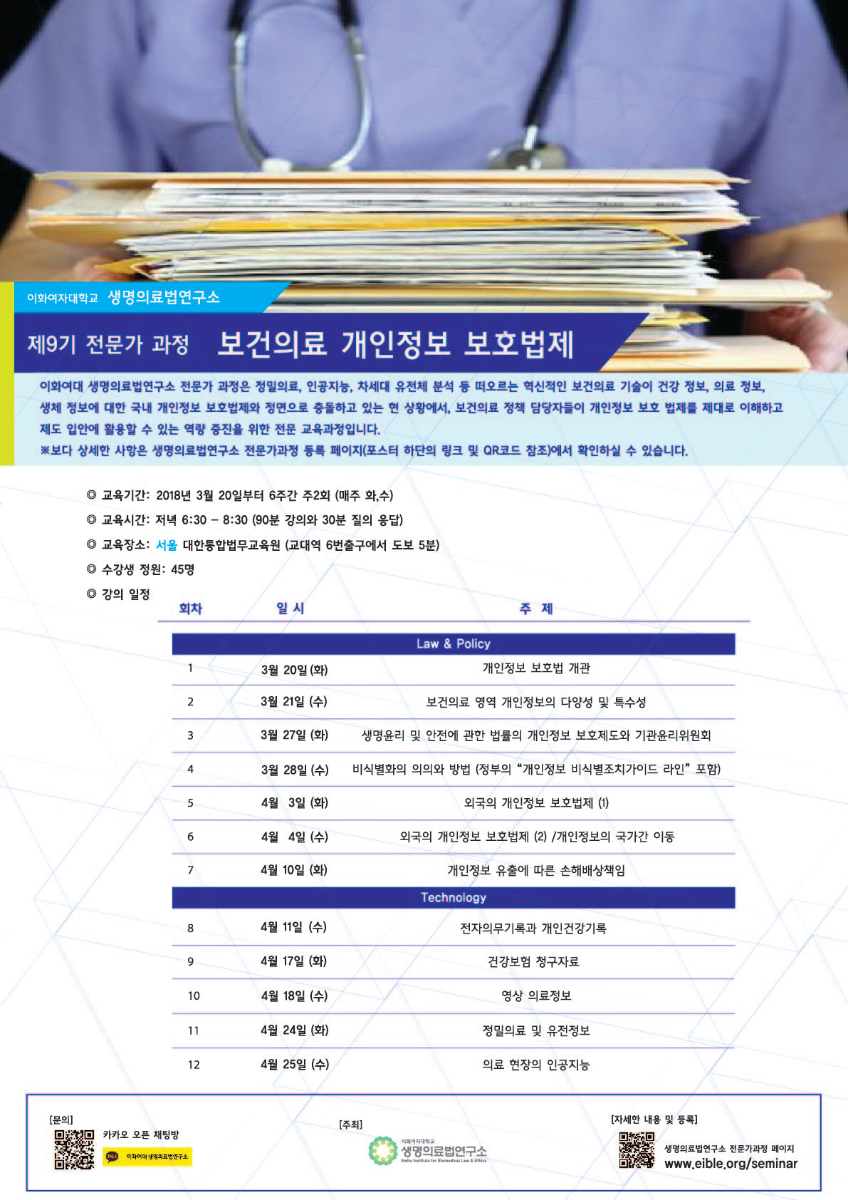 [이화여대 생명의료법연구소] 전문가과정 9기 안내