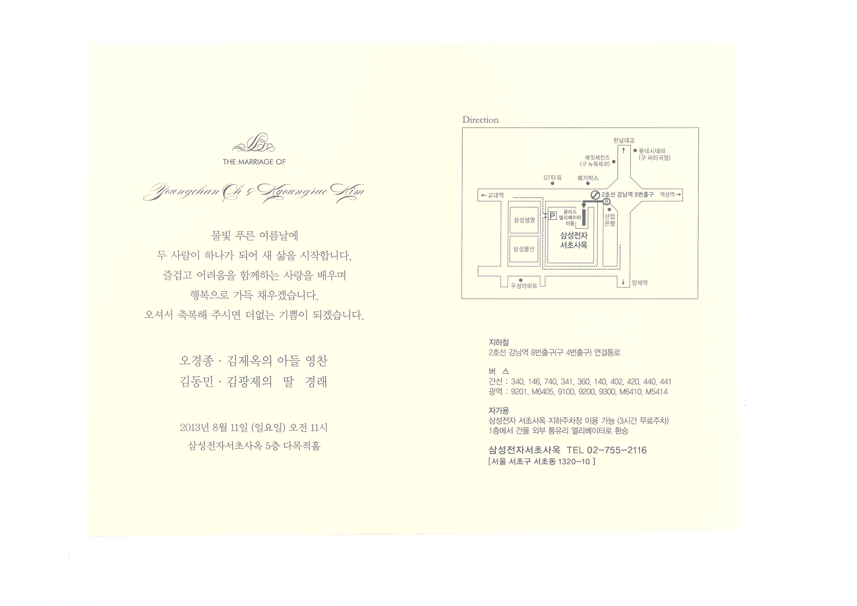 우리학회 부회장이신 (주)한국종합기술 김동민 부사장의 자녀 혼사가 아래와 같이 있으니, 회원여러분들의 많은 축복 바랍니다.