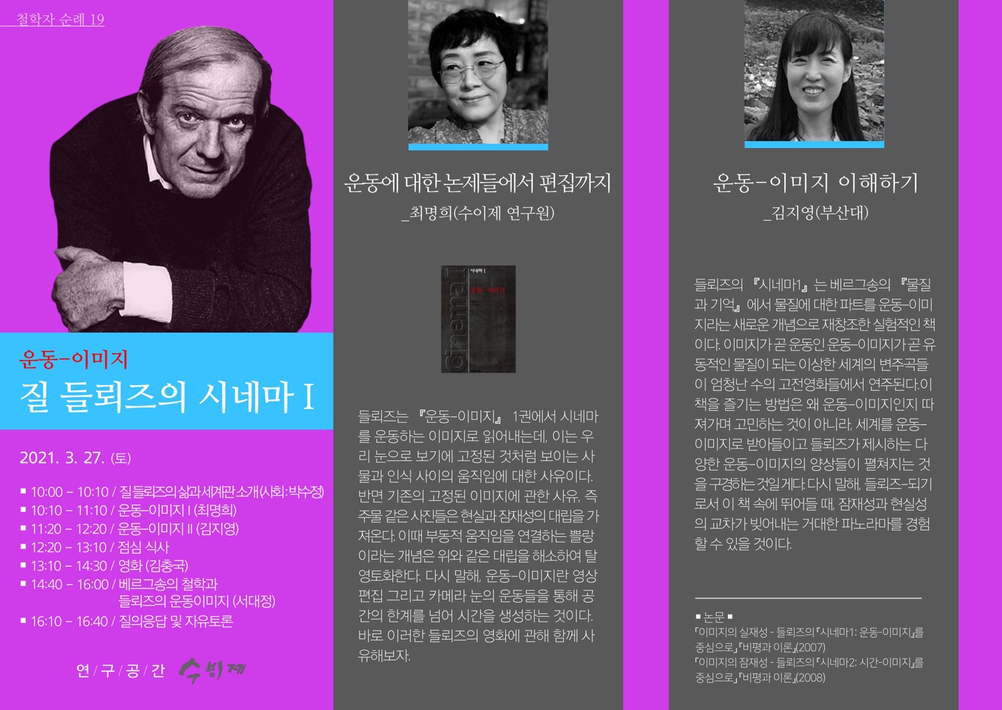 2021년 철학자 순례 19 : 질 들뢰즈의 시네마 I