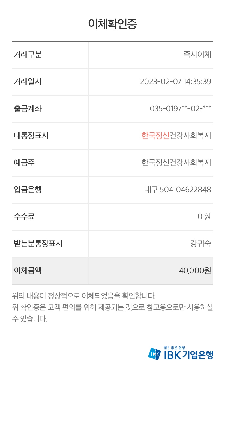 입금자 강귀숙 대구은행 504104622848 4만원 입급하였고 입금확인증 첨부합니다.