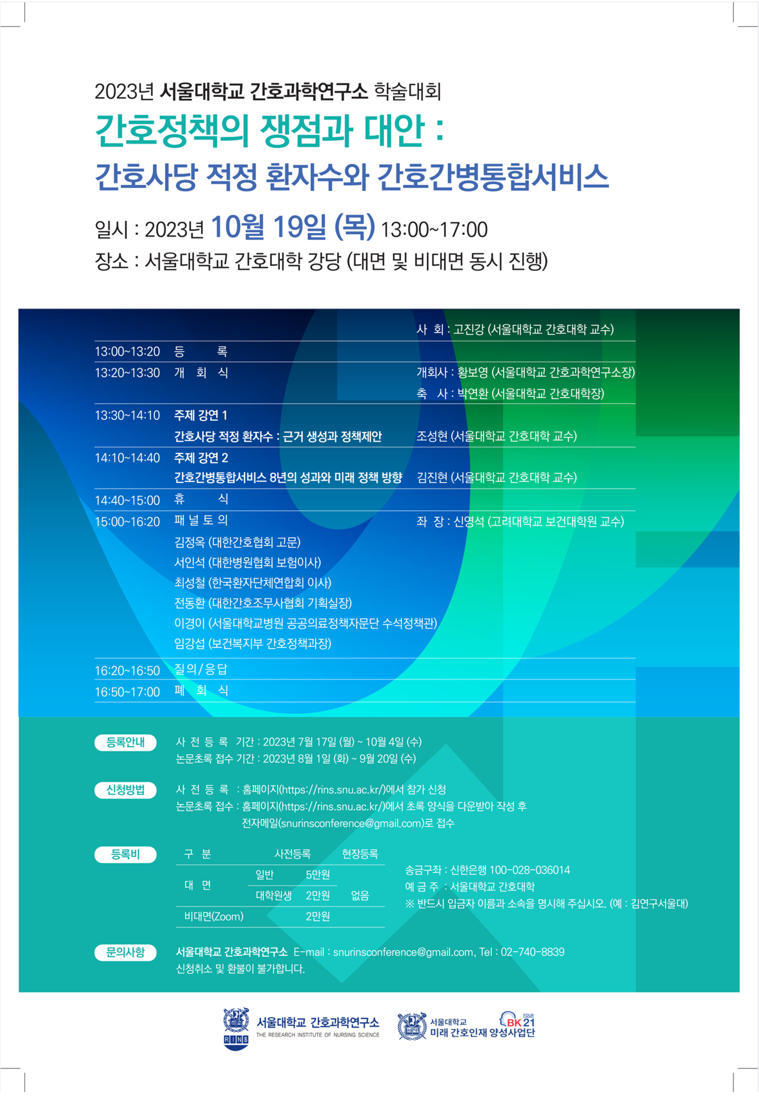 *송금구좌: 신한은행 100-028-036014 (예금주: 서울대학교 간호대학)