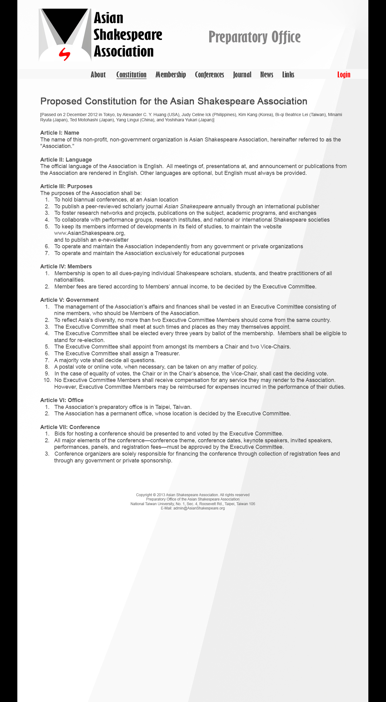 Asian Shakespeare Association 창립 계획및 회원 모집 안내