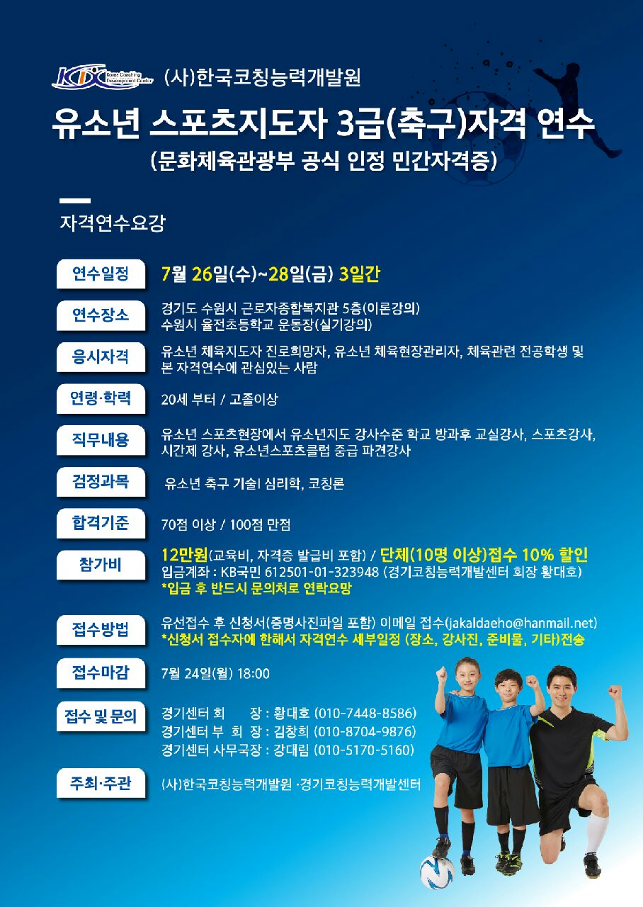 2017 유소년스포츠지도자(축구) 3급 자격연수안내