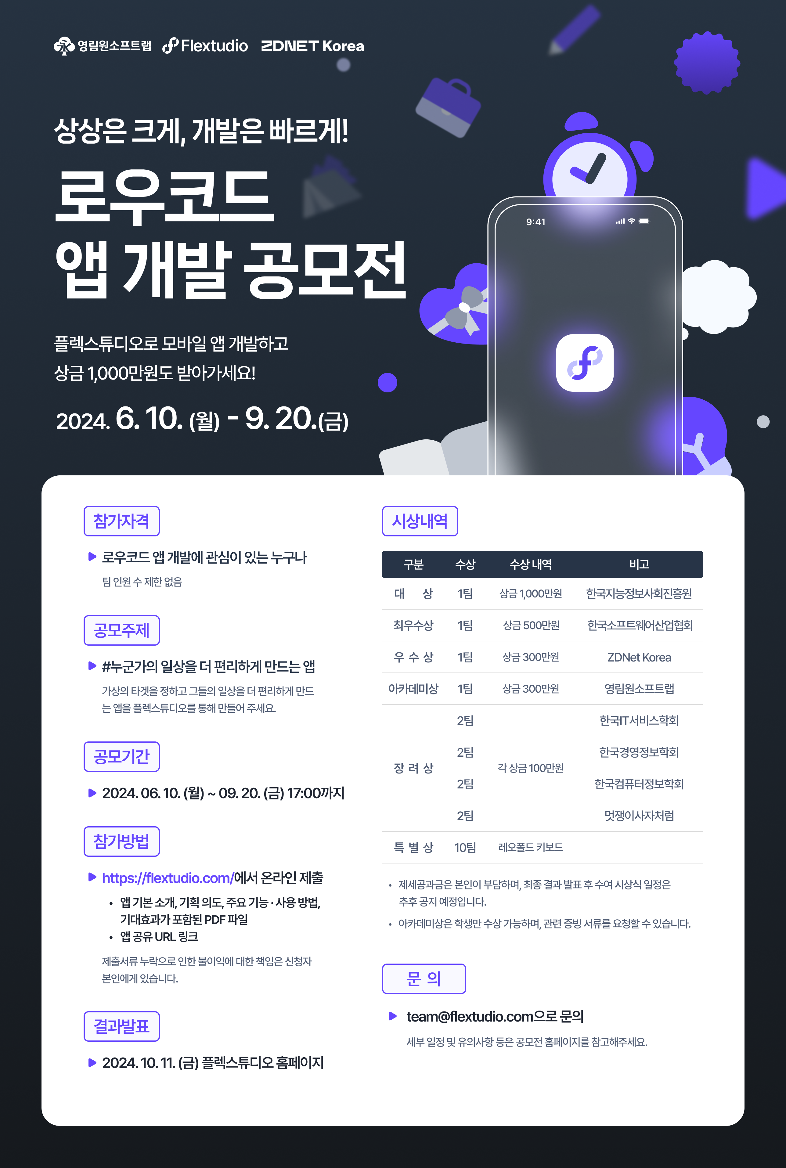 - 수상작 발표: 2024.10.11(금) 플렉스튜디오 홈페이지, 개별 연락 예정