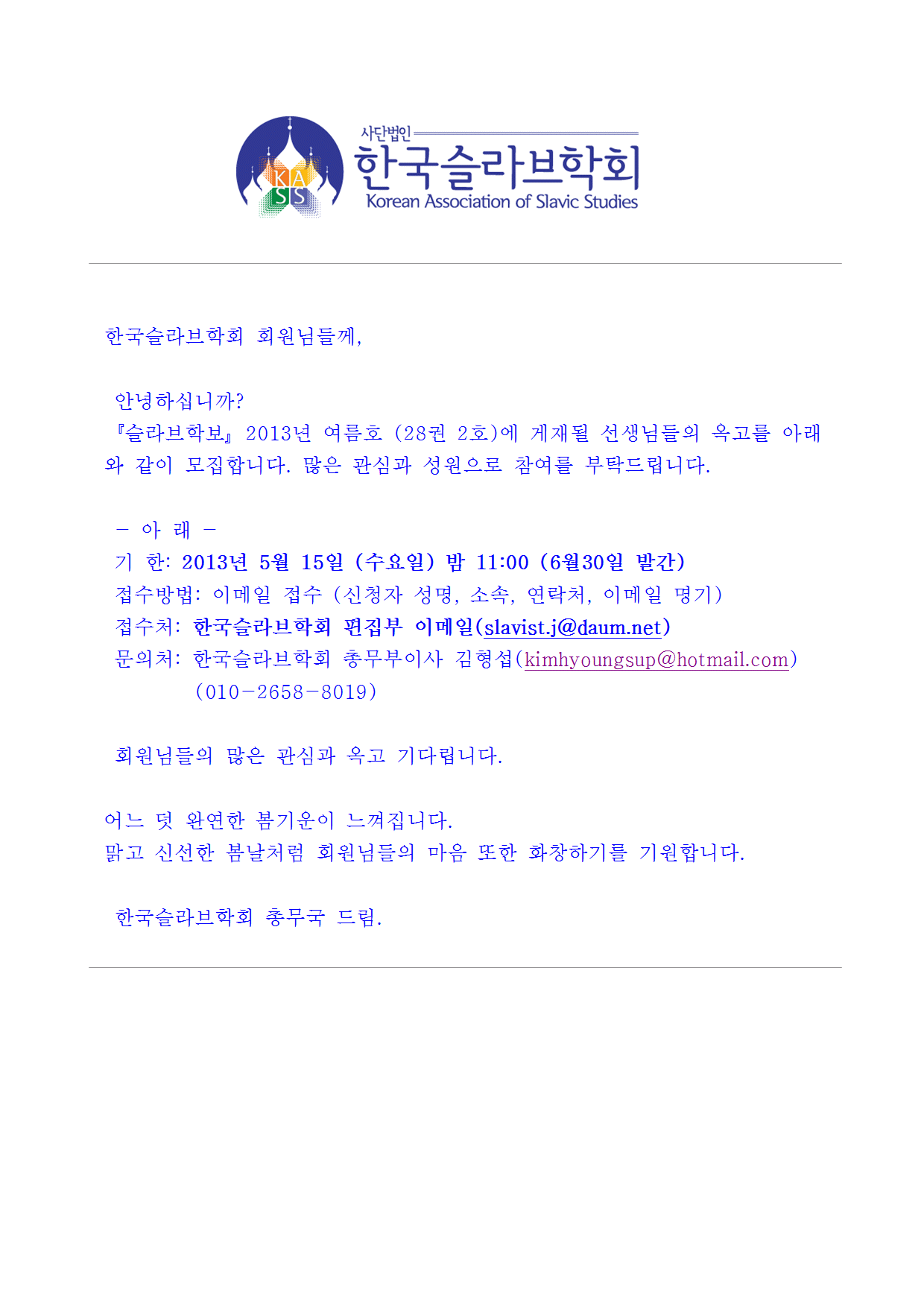 슬라브학보 제28권 2호 (6월30일 발간) 논문투고 안내